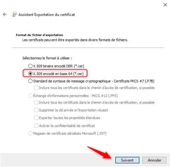 > Sélectionner l'option encodé en base 64 ouis cliquer sur "Suivant"